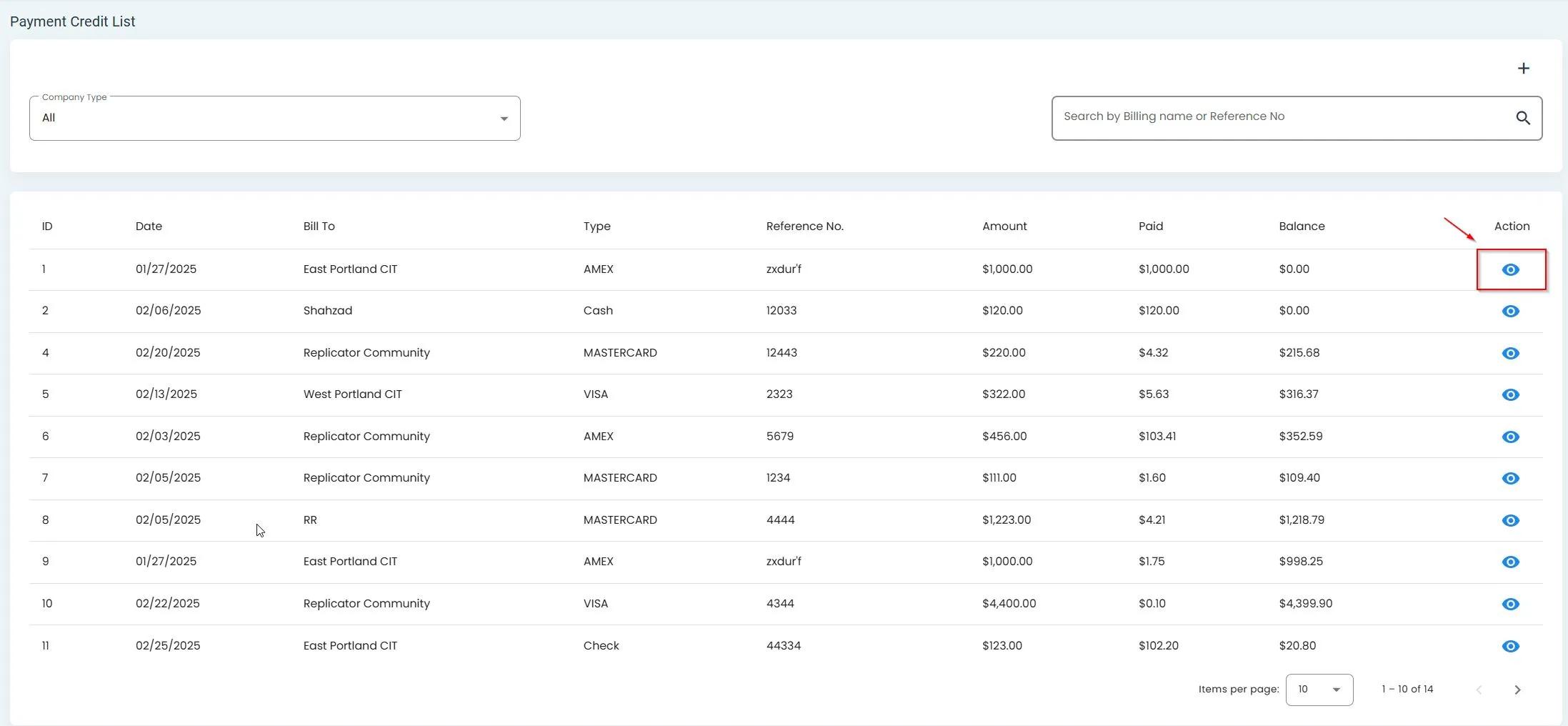 View payment transaction details