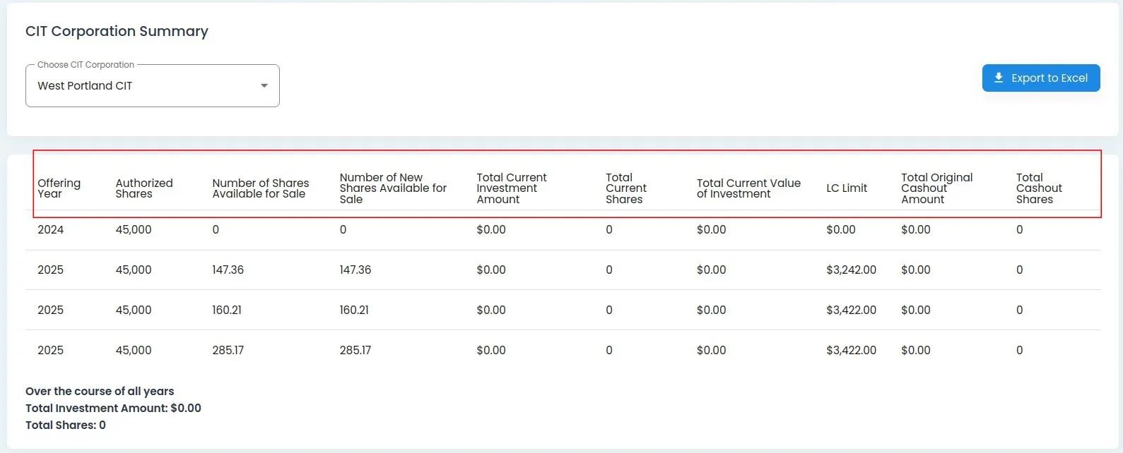 Column: Total Current Investment Amount: The total amount currently invested in the Offering.
