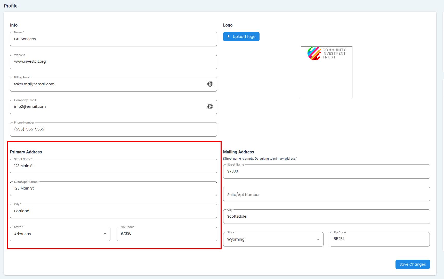The Section: Primary Address subsection is where you can change the primary location of your company.